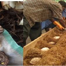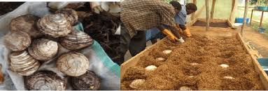Before use, the substrate must be sterilized using steam to eliminate pathogens. To achieve this, a reasonable quantity of water is poured into a drum containing stones. The water level should be slightly below the stones to ensure that the substrate does not come into direct contact with water during steaming. The substrates are bagged and placed on the stones, ensuring no contact between the bags and water. The drum is then covered with a lid and heated. Steaming is continued for about 30 minutes after the water begins to boil.