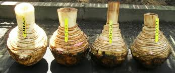 Using a clean, sharp knife, the leaf sheaths of the corm are carefully peeled off one after another to expose the bud and meristematic region, leaving about 2 mm above the corm. To suppress apical dominance and prevent shooting from the top, the meristematic region is drilled or scarified by making an “X”-shaped incision at the top of the corm.